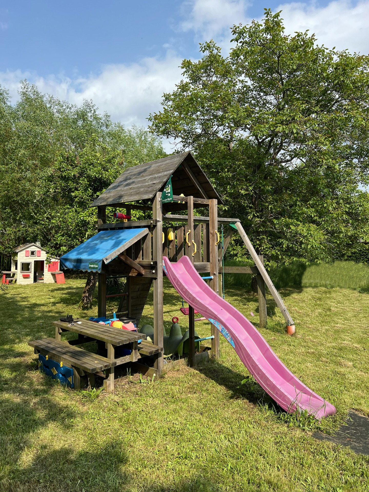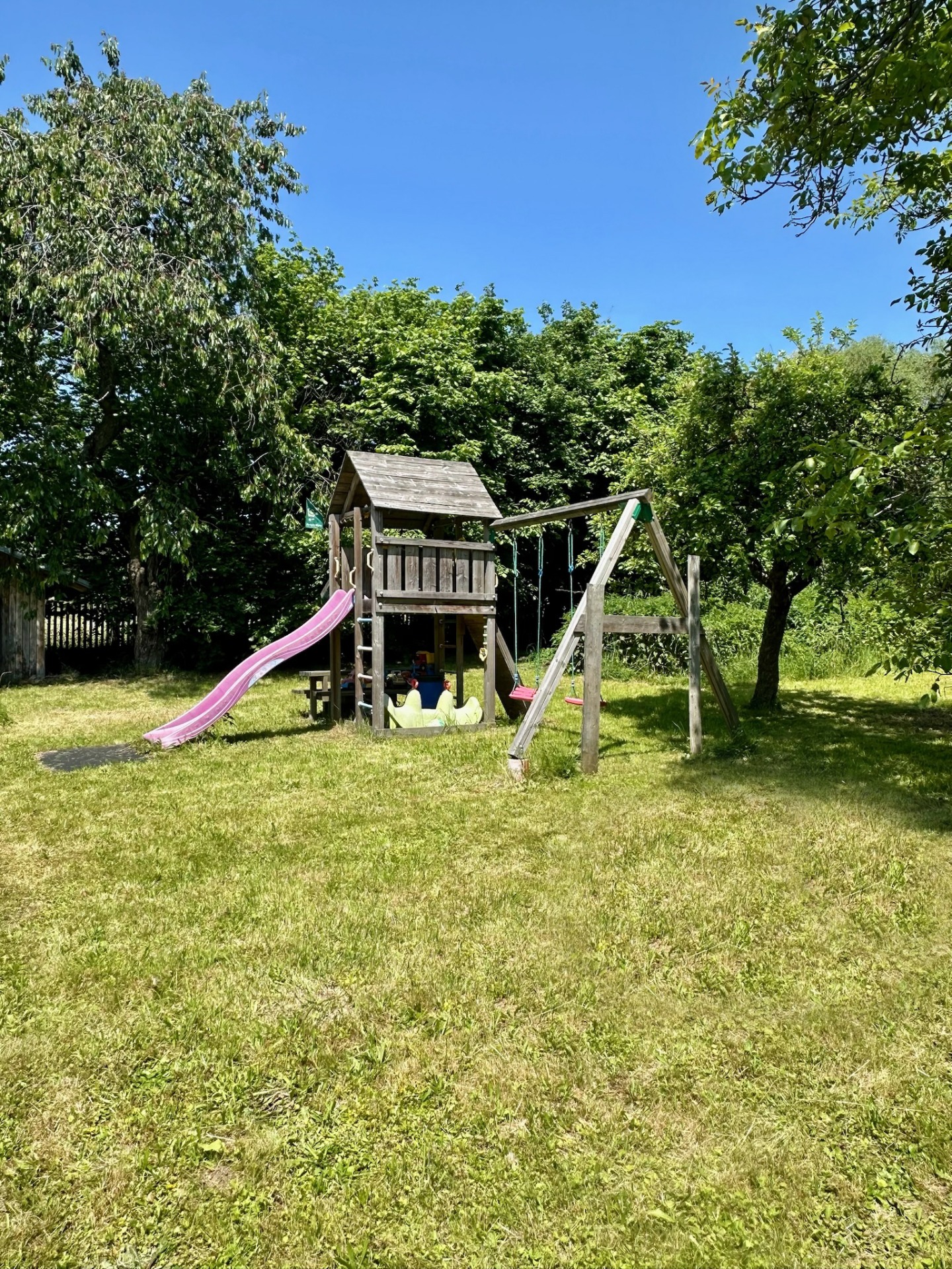 Součástí ubytování je rozlehlá oplocená zahrada, která představuje ideální místo pro relaxaci i zábavu během slunečných dní. Z apartmá můžete sejít přímo do zeleně, užít si večer u praskajícího ohně s opékáním špekáčků, nebo si dopřát klidný odpočinek v přírodě. Nejmenší návštěvníci ocení dětské hřiště s houpačkami a skluzavkou, pro ty úplně nejmenší je připravený domeček plný hraček.